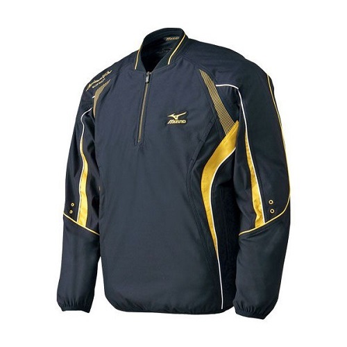 品番:12JE4J50 カラー:09:ブラック×ゴールド サイズ:S、M、L、O、XO、2XO 素材:ポリエステル100% フライス:ポリエステル95%、ポリウレタン5% 詳細:背中、右脇にミズノプロロゴ刺繍入り 生産国:中国製
