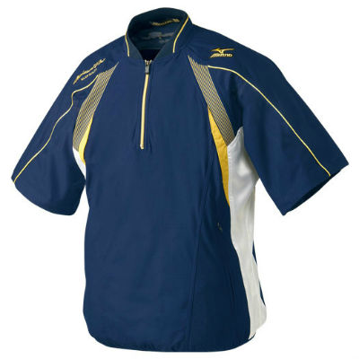 半袖ハーフジップトレーニングジャケット。背中、右肩にミズノプロロゴ刺繍入り。