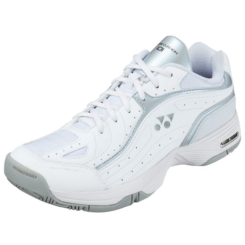 品番:SHT101 カラー:011:ホワイト サイズ:22.0〜28.0cm アッパー:人工皮革 ミッドソール:合成樹脂 アウトソール:ゴム底 詳細:ローカット、3E設計 対象コート:オムニ、クレーコート用 原産国:ベトナム製