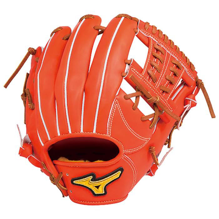 品番:1AJGH14005 カラー:52X:スプレンディッドオレンジ(縫糸:シャンパンゴールド) 素材:ジェネラルキップレザー(天然皮革:牛革) サイズ:10 ポジション:内野手用5(右投げ用) 付属品:BSSショップ限定専用袋付き 原産国:中国製
