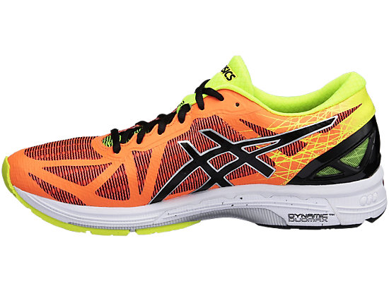 前足部中央のデュオソールが、路面をしっかりとらえるグリップ力を発揮。ミッドソールには軽量性に優れたSolyte、アッパーには軽量構造を採用し、軽量化を実現。上部に凹凸を施しミッドソールをはさみ込んだダイナミックデュオマックスが、着地時の衝撃を分散させて足の負担を軽減。前足部まで伸ばしたプロパルションプレートと、かかと部からつま先部まで伸ばしたガイダンスラインが、効率よく安定した走りを実現。