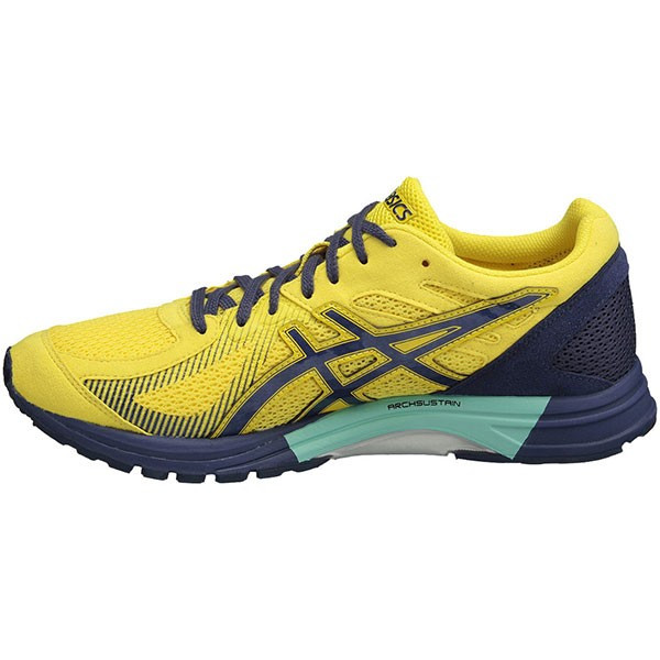品番:TJR406 カラー:0551:レモンイエロー×ディープコバルト サイズ:24.5〜29.0cm 本体:合成繊維製(ラッセル構造) 補強:人工皮革製(エクセーヌ) アウターソール:ゴム底 インナーソール:取り替え式 適合する別売中敷:TZS714 生産国:ベトナム製