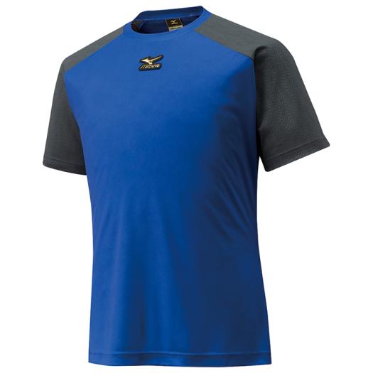 品番:12JA6T80 カラー:27:ブルー サイズ:S、M、L、O、XO、2XO 素材:ポリエステル100% 袖:ポリエステル91%、ポリウレタン9% その他仕様:ミズノランバードマークワッペン付き、後身上部にミズノプロ刺繍 生産国:タイ製
