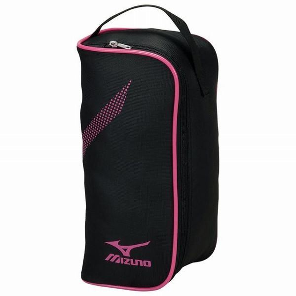 ミズノ(MIZUNO) シューズケース 品番:63JM-6016 カラー:96:ブラック×ピンク サイズ:L16×W14×H33cm 素材:ポリエステル(裏加工PU) 原産国:ベトナム製