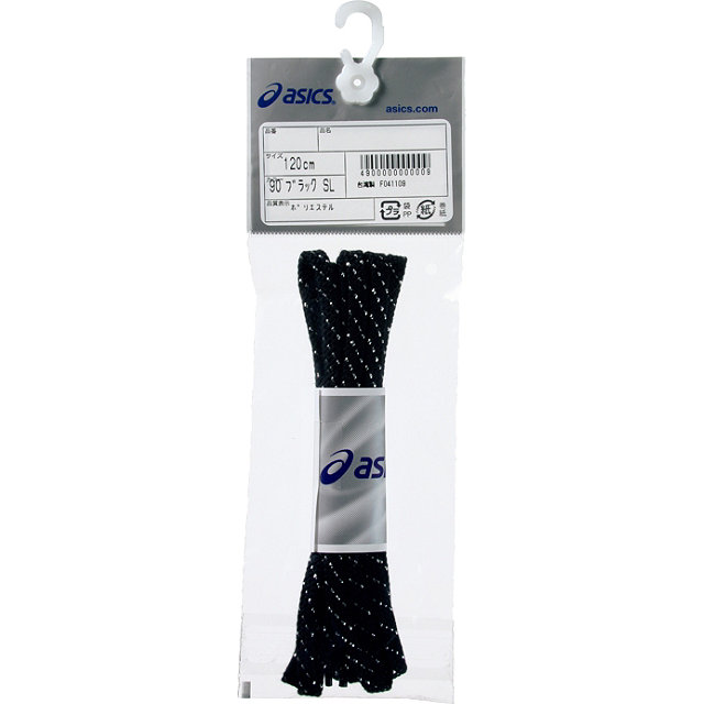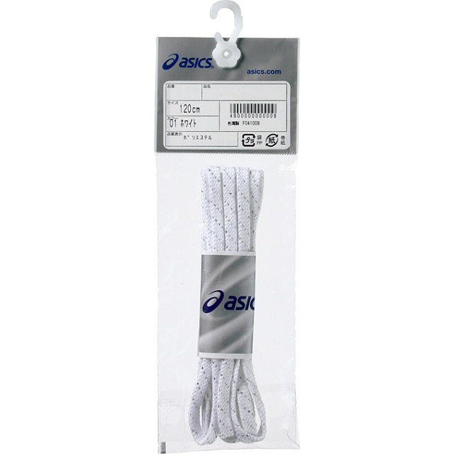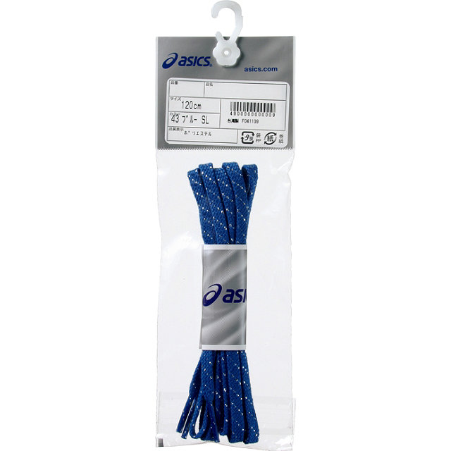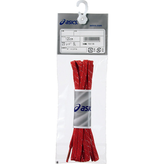 レーシングシューズ向けのシューレース アシックス レーシングシューレース(ラメ入り) 品番:TXX119 メーカー希望小売価格 315(本体300) カラー:01 ホワイト 23 レッド 30 フラッシュオレンジ 43 ブルー 50 ネイビー 90 ブラック サイズ:120・130cm 生産国:台湾 素材:本体:合成繊維製(リサイクルポリエステル)