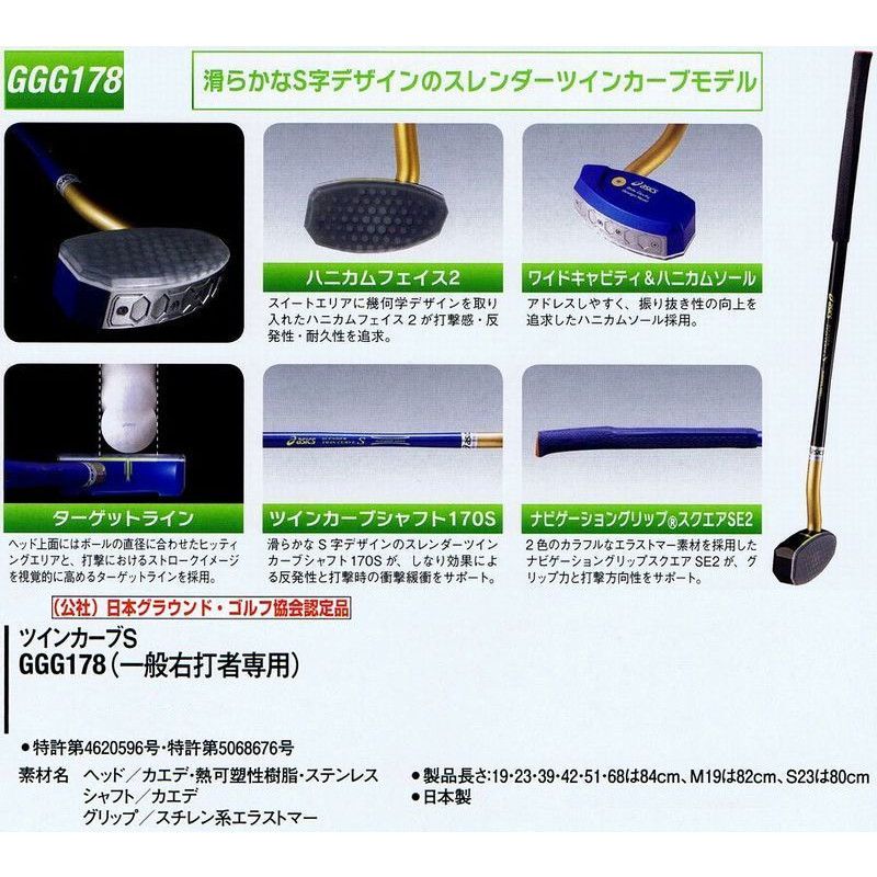 アシックス(asics) グラウンドゴルフクラブ ツインカーブS 品番:GGG178(一般右打者専用) カラー:19(ピンク) サイズ:84cm 素材名 ヘッド:カエデ・熱可塑性樹脂・ステンレス シャフト:カエデ グリップ:スチレン系エラストマー (公社)日本グラウンド・ゴルフ協会認定品 特許第4620596号 特許第5068676号