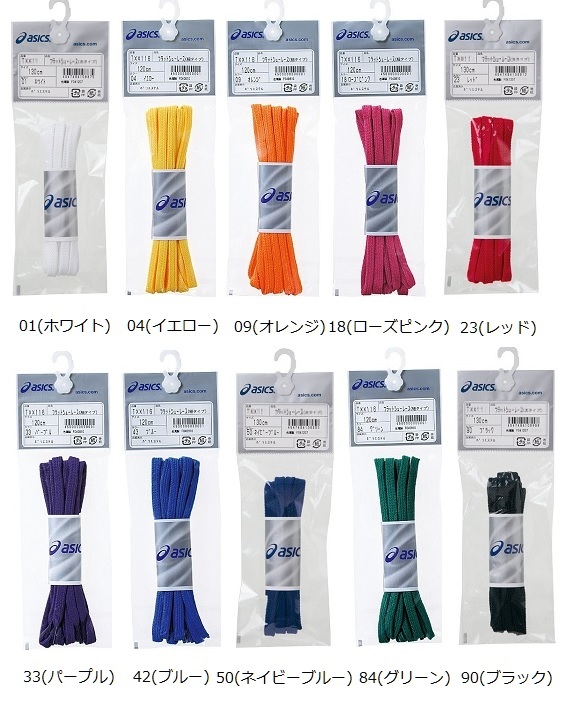 フラット(平断面)の細タイプのシューレース アシックス フラットシューレース(細タイプ) 品番:TXX116
