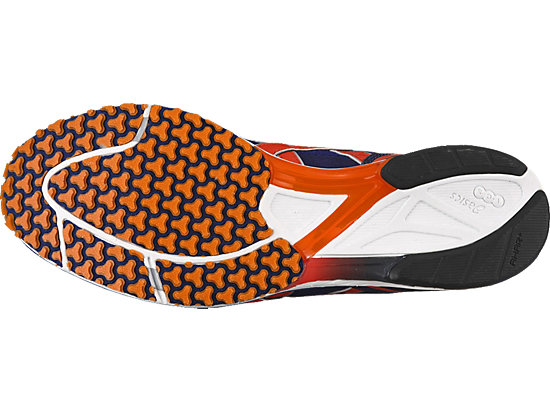 蹴り出す方向へ優れたグリップ力を発揮するデュオソールを採用。中足部から前足部にかけて、安定性と反発性に優れたプロパルションプレートを搭載。優れた走行効率を発揮。履き口にはスエード調の素材を採用し、足首周りのホールド性とフィット性を実現。