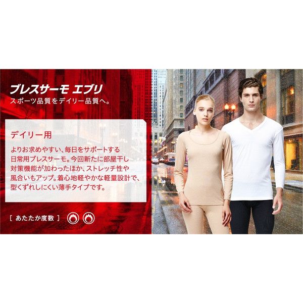 スポーツ品質をデイリー品質へ。 発熱力はそのままに、街着に快適な性能を追求。 着心地軽やかな軽量設計で、型くずれしにくい薄手タイプです。