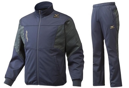 品番:ジャケット:12JE6W82/パンツ:12JF6W82 カラー:14/14:ディープネイビー サイズ:S、M、L、O、XO、2XO 素材:ポリエステル100% フライス:ポリエステル95%、ポリウレタン5% 詳細:左胸にミズノランバードマークワッペン付、左胸にミズノプロ刺繍 生産国:中国製