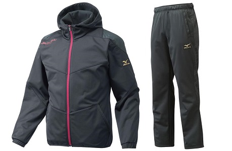 品番:ジャケット:12JE6W83/パンツ:12JF6W82 カラー:66/66:ブラック×ディーバピンク サイズ:S、M、L、O、XO、2XO 素材:ポリエステル100% 詳細:左袖にミズノランバードマークワッペン付、右肩にミズノプロ刺繍 生産国:中国製