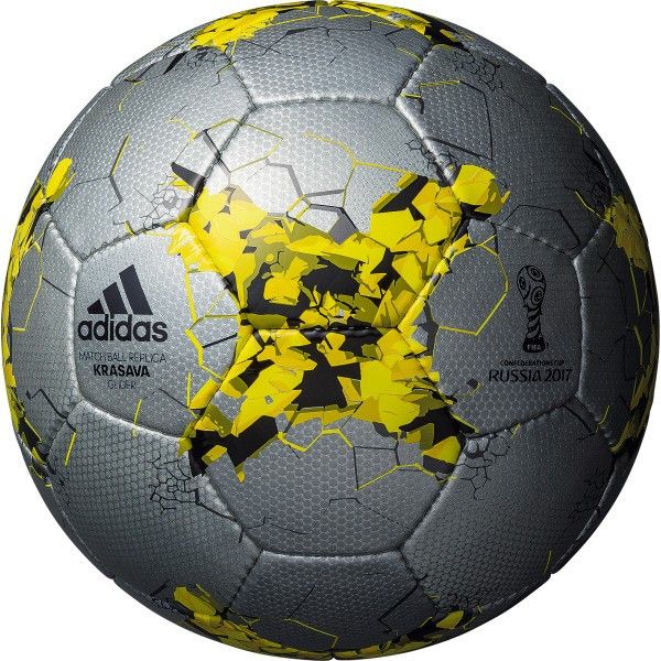 アディダス、FIFA主催大会公式試合球「KRASAVA」、レプリカ5号球。 コンフェデレーションズカップ開催国ロシアを象徴するロシアンルビーよりインスピレーションされたデザインを採用。 商品名には「とても美しいもの、それに対する究極の称賛」を意味するロシアのスポーツファンに普及している創造性に富んだプレーに対する賛辞「クラサバ」を採用。