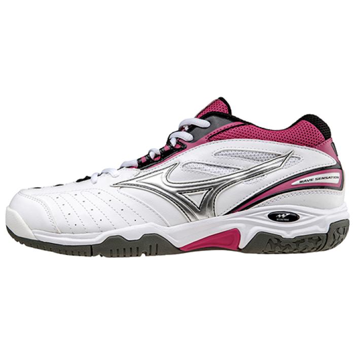 品番:61GB1540 カラー:65:ホワイト×シルバー×ピンク サイズ:22.0〜29.0、30.0cm(3E相当) 甲材:人工皮革、合成繊維 底材:合成樹脂 交換対応インソール:6ZK260、6ZK380、6ZK08004 交換対応シューレース:8ZA200 対象:砂入り人工芝、クレーコート用 原産国:ベトナム製