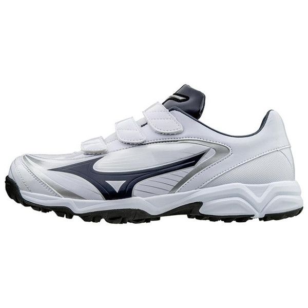 ミズノ(MIZUNO) トレーニングシューズ セレクトナイントレーナーCR 品番:11GT172214 カラー:14:ホワイト×ネイビー サイズ:23.0〜29.0、30.0cm 質量:約285g(27.0cm片方) 甲材:人工皮革 底材:合成底 幅:3E 原産国:カンボジア製