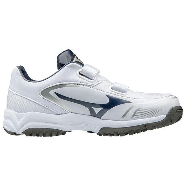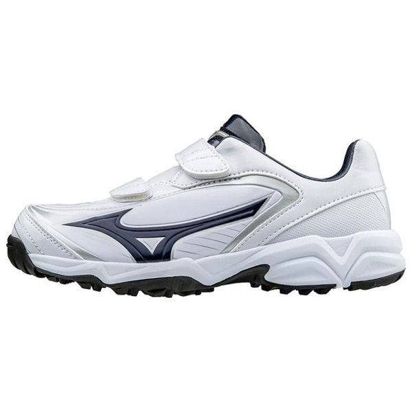 ミズノ(MIZUNO) ジュニアトレーニングシューズ セレクトナイントレーナー Jr CR 品番:11GT172314 カラー:14:ホワイト×ネイビー サイズ:18.0、19.0、20.0、21.0〜23.0cm 質量:約185g(21.0cm片方) 甲材:人工皮革 底材:合成底 幅:3E 原産国:カンボジア製