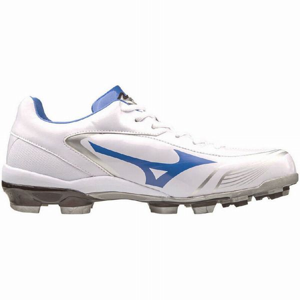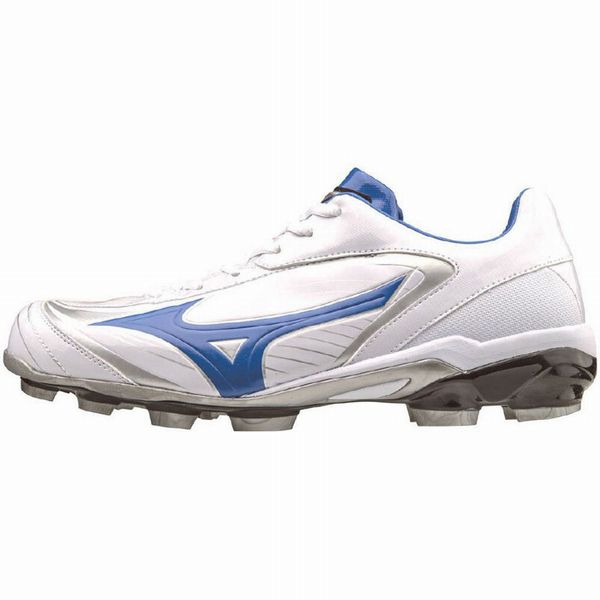 ミズノ(MIZUNO) ポイントスパイク セレクトナイン 品番:11GP172028 カラー:28:ホワイト×ブルー サイズ:21.0〜29.0、30.0cm 質量:約290g(27.0cm片方) 甲材:人工皮革 底材:合成底 スパイク:合成樹脂 幅:3E 原産国:カンボジア製