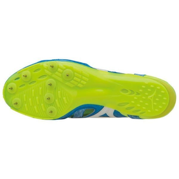 品番:U1GA1601 カラー:25:スカイブルー×ホワイト×フラッシュイエロー サイズ:22.0~29.0cm 質量:140g(26.0cm片方) 甲材:合成繊維、人工皮革 底材:合成底 スパイクピン:固定式(7mm、3mm) 競技種目:100〜400m、ハードル 競技場:オールウェザートラック専用 付属品:シューズ袋(日本製)付 原産国:日本製