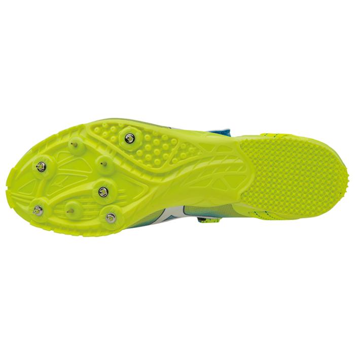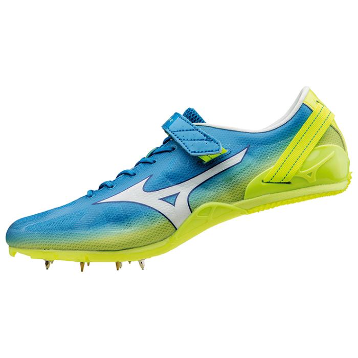 品番:U1GA1610 カラー:25:スカイブルー×ホワイト×フラッシュイエロー サイズ:22.0~29.0cm 質量:170g(26.0cm片方) 甲材:合成繊維、人工皮革 底材:合成底 スパイクピン:8ZA303(8mm)、固定式(7mm) 競技種目:100〜400m、ハードル 競技場:オールウェザートラック専用 付属品:シューズ袋付 原産国:中国製