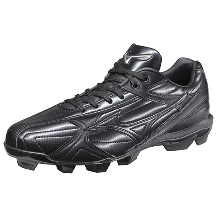 品番:11GP1441 カラー:00:ブラック×ブラック サイズ:21.0〜29.0、30.0cm(3E相当) 質量:約210g(21.0cm片方) 本体:人工皮革 補強:人工皮革 アウトソール:合成底 ミッドソール:合成樹脂(熱成型E.V.A.スポンジ) スパイク:合成樹脂(Fスタッド固定式) 原産国:中国、カンボジア製