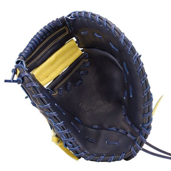 ウィルソン(Wilson) 女子ソフトボール用グラブ 捕手用 Wilson Queen(ウイルソンクィーン) 品番:WTASQQ7CZ カラー:ネイビー×イエロー(5004) ポジション:捕手用 左右:右投げ 表革素材:プロストックレザーMT 裏革素材:ライニングレザーSG 製造国:日本製
