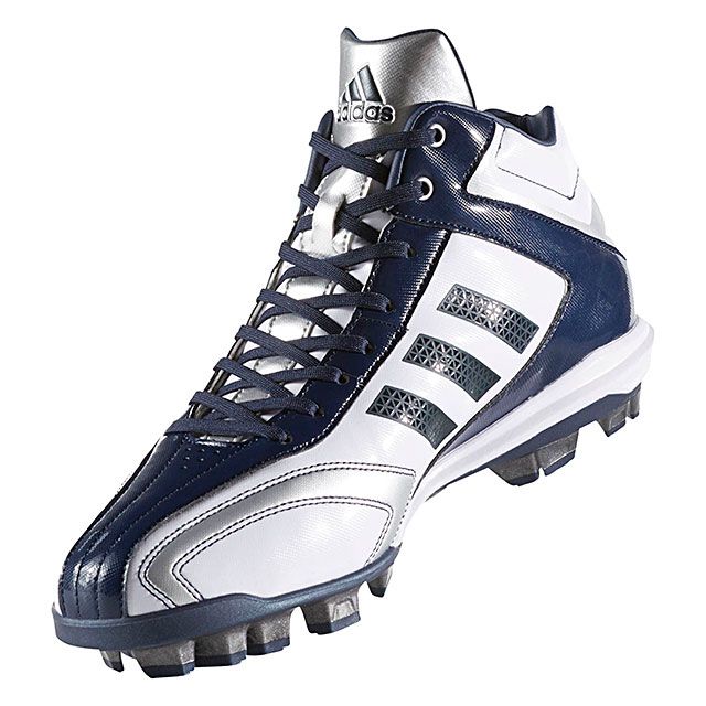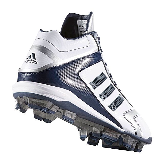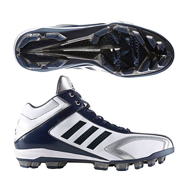 アディダス(adidas) 樹脂底ポイントスパイク アディピュアT3 MID ポイント 品番:AQ8360 カラー:クリスタルホワイト×カレッジネイビー×カレッジネイビー サイズ:24.0〜30.0cm 素材 アッパー:合成皮革 アウトソール:合成底 アッパー素材 耐久性が高く保形性能に優れた素材で、足を安全にガッチリとホールドする。 ラスト シューズ・クリエーター大森敏明氏によって開発されたBaseball 専用ラスト。 初代から更なる進化を加え、現代のアスリート特性を緻密に再現。 ヒール(踵)部がすっぽりと包みこまれるサポート感によってスパイク内のブレを防ぎ、足の5本の指に力を伝える事でパフォーマンスを向上させる。 パターン 足をサポートすることを一番に考えたアディピュアパターンによって、ガッチリとしたホールド感が得られる。更にミッドカットパターンにより足首をしっかりとサポートする。 アウトソール EW adidasMOBILITY ポイントソールによって、安定感と機動力が向上した。