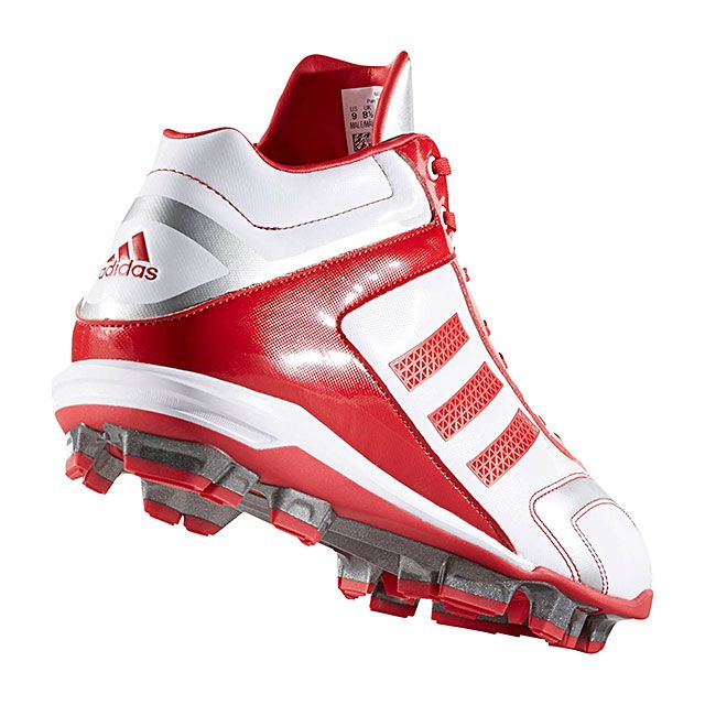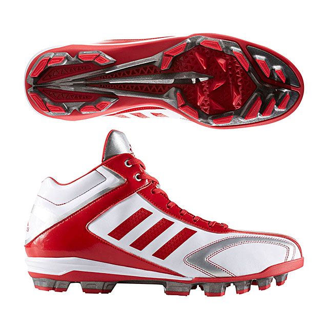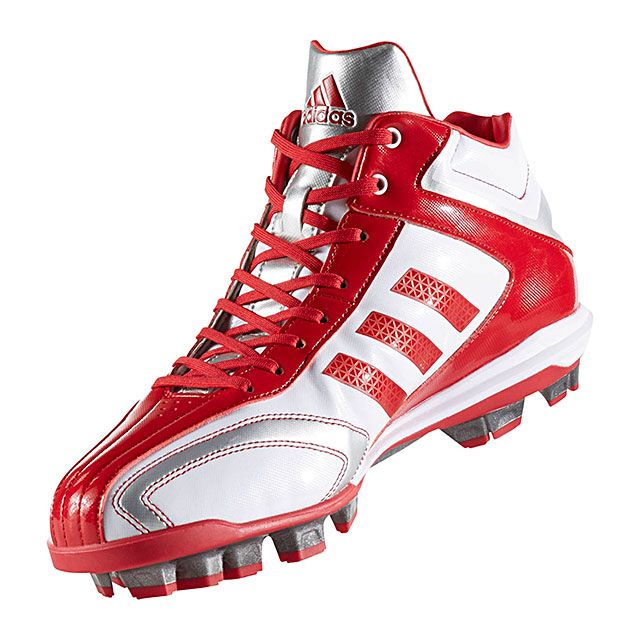 アディダス(adidas) 樹脂底ポイントスパイク アディピュアT3 MID ポイント 品番:AQ8359 カラー:クリスタルホワイト×パワーレッド×クリスタルホワイト サイズ:24.0〜30.0cm 素材 アッパー:合成皮革 アウトソール:合成底 アッパー素材 耐久性が高く保形性能に優れた素材で、足を安全にガッチリとホールドする。 ラスト シューズ・クリエーター大森敏明氏によって開発されたBaseball 専用ラスト。 初代から更なる進化を加え、現代のアスリート特性を緻密に再現。 ヒール(踵)部がすっぽりと包みこまれるサポート感によってスパイク内のブレを防ぎ、足の5本の指に力を伝える事でパフォーマンスを向上させる。 パターン 足をサポートすることを一番に考えたアディピュアパターンによって、ガッチリとしたホールド感が得られる。更にミッドカットパターンにより足首をしっかりとサポートする。 アウトソール EW adidasMOBILITY ポイントソールによって、安定感と機動力が向上した。