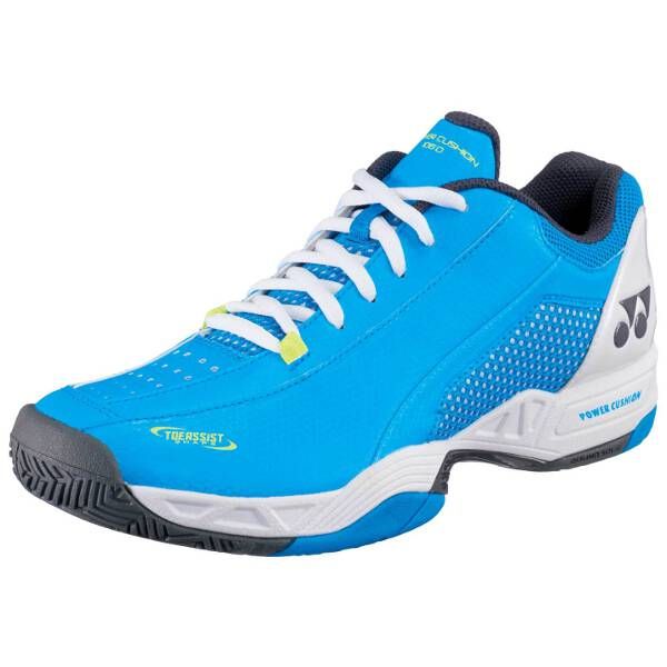 ヨネックス(YONEX) テニスシューズ パワークッション106D 品番:SHT-106D カラー:スカイブルー(018) サイズ:22.0〜29.0cm 素材 アッパー:人工皮革 ミッドソール:合成樹脂 アウトソール:ゴム底 足幅:3E 備考:クレー/砂入り人工芝コート用 生産国:ベトナム製