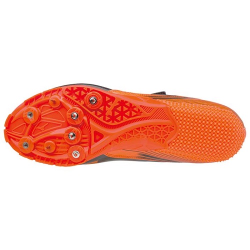 品番:U1GA1715 カラー:54:ブラック×オレンジ サイズ:22.0〜29.0cm 質量:200g(26.0cm片方) 甲材:合成繊維、人工皮革 底材:合成底 スパイクピン:8ZA303(8mm)、固定式(7mm) レンチ:8ZA309 競技種目:100〜400m、ハードル 競技場:オールウェザー専用 付属品:シューズ袋(中国製)付 原産国:中国製