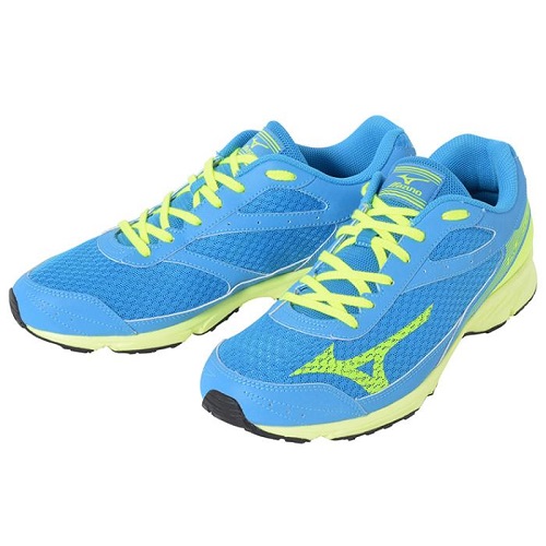 品番:J1GA1684 カラー:45:スカイブルー×フラッシュイエロー サイズ:24.5〜29.0cm(3E相当) 甲材:合成繊維、人工皮革 底材:合成底 質量:約225g(27.0cm片方) 原産国:インドネシア製