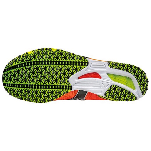 解剖学的(アナトミカル)な視点から人間の足の複雑な立体形状を再現した「アナトミカルラスト」を採用。包まれるようなナチュラルフィッティングを実現。シューズと足裏の一体感を高め、走行中の足への負担を軽減するアナトミカルカップインソールを採用。WAVE形状(波型)に立体成型されたミッドソールを2層に重ね合わせることで薄底ながら高いクッション&安定性を両立。スパイクのように加速する新アウトソール「メッシュシャークソール」を採用。また従来ソールよりも反発性が高く、スピードレースにも対応。