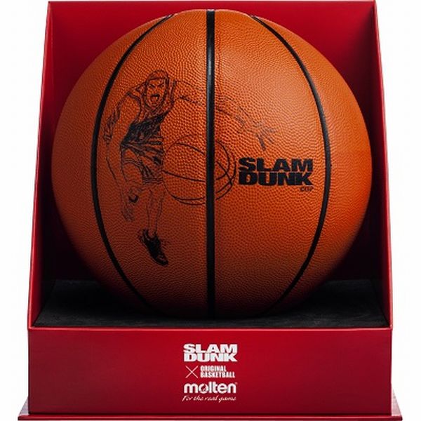 『スラムダンク』が1990年から1996年まで週刊少年ジャンプに連載されていた当時の全国大会の公式試合球 JB-77を復刻 物語のクライマックスで主人公の桜木花道が活躍するシーンのイラストをボール中央にレイアウトしました。 また、表皮には当時の公式試合球と同じ天然皮革を採用し、質感も再現しています。