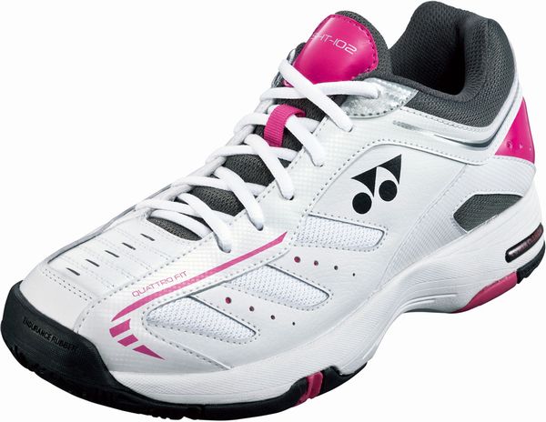 ヨネックス(YONEX) テニスシューズ パワークッション102 品番:SHT102 カラー:ブラック×ピンク(181) サイズ:22.0〜28.0cm 素材 アッパー:人工皮革 ミッドソール:合成樹脂 アウトソール:ゴム底 仕様:クレー・砂入り人工芝コート用 足幅:3E 生産国:インドネシア製