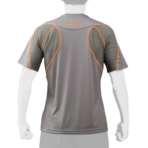 吸汗速乾素材「エアストドライ2」と後ろ身頃脇部へメッシュ素材採用のミズノプロTシャツ。