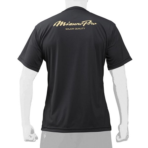 背中にミズノプロビッグロゴ採用ワンポイントTシャツ。