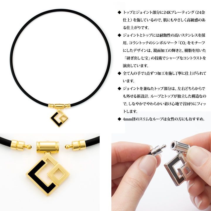トップとジョイント部分に24Kプレーティング(24金仕上)を施しているので、肌にもやさしく高級感のある仕上がりです。