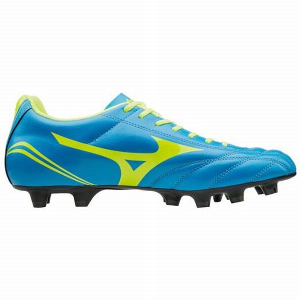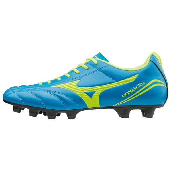 ミズノ(MIZUNO) サッカースパイク モナルシーダ FS MD 品番:P1GA162344 カラー:ブルー×イエロー サイズ:24.5〜29.0cm 素材/甲材:人工皮革、底材:合成底 質量:約230g(27.0cm片方) ソフト人工皮革 ワイド軽量ソール ※天然芝/土/人工芝のグラウンド用 原産国:インドネシア製
