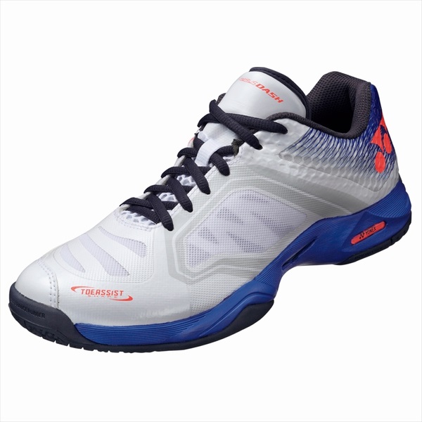ヨネックス(YONEX) テニスシューズ パワークッション エアラスダッシュ GC 品番:SHTADGC カラー:ホワイト/ブルー(207) サイズ:22.0〜29.0cm 素材 アッパー:人工皮革 ミッドソール:合成樹脂 アウトソール:ゴム底 備考クレー・砂入り人工芝コート用 軽量:片足270g(26.0cm) ローカット 3E設計 生産国:中国製 ※本商品は日本ソフトテニス連盟の使用基準に準拠しておりますが、中学生の各連盟主催大会ではまだカラーシューズの使用許可は認められてない場合もございますので各都道府県連盟にご確認ください。