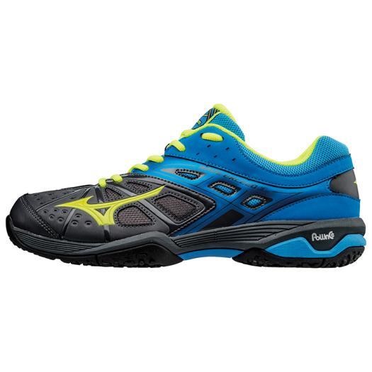 ミズノ(MIZUNO) テニスシューズ ウエーブエクシード EL2 OC 品番:61GB171727 カラー:ダークグレイ×イエロー×ブルー サイズ:23.0〜28.5cm 素材 甲材:人工皮革、合成繊維 底材:合成底 足幅:3E カップインソール(取り外し可) 対象/目的:砂入り人工芝・クレーコート用