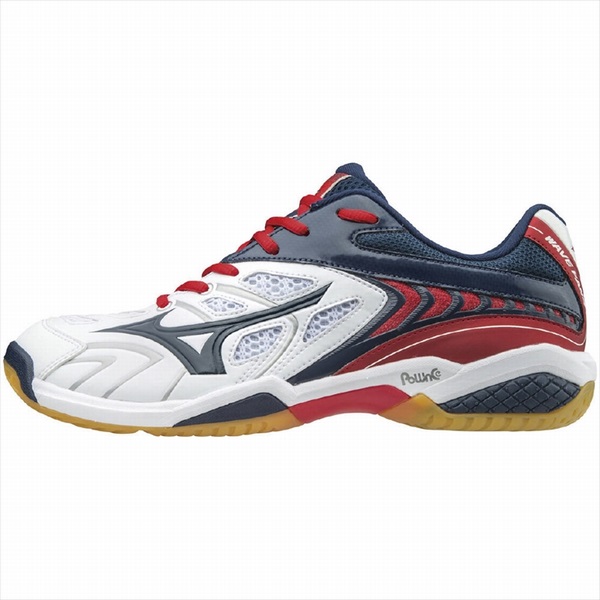 ミズノ(MIZUNO) バドミントンシューズ ウエーブファング SS2 ワイド 品番:71GA171314 カラー:14:ホワイト×ネイビー×レッド サイズ:23.0〜28.5cm 素材 甲材:人工皮革・合成繊維 底材:合成底 質量:約310g(27.0cm片方) インソールマイルドクッションインソール(取り外し可) ノンマーキングソール 足幅:3E