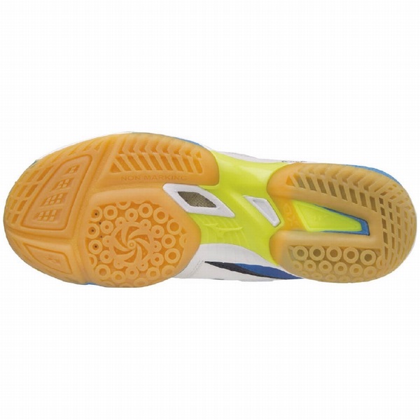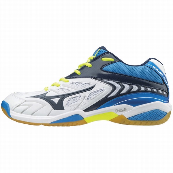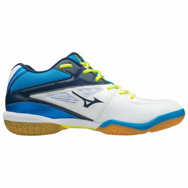 ミズノ(MIZUNO) バドミントンシューズ ウエーブファング SS2 ミッド 品番:71GA171114 カラー:14:ホワイト×ネイビー×ブルー サイズ:22.5〜28.0cm 素材 甲材:人工皮革・合成繊維 底材:合成底 質量:約315g(27.0cm片方) インソール マイルドクッションインソール(取り外し可) ノンマーキングソール