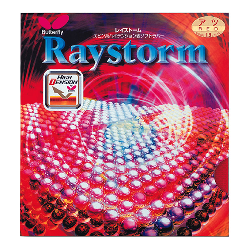 バタフライ エネルギー内蔵型表ソフトラバー レイストーム 品番:00280 カラー:赤・黒 スポンジの厚さ:中・厚・特厚