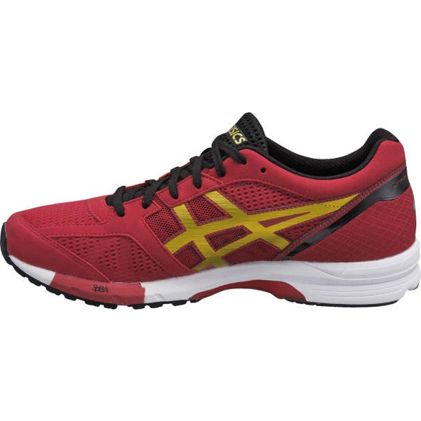 品番:TJL432 カラー:2394(トゥルーレッド×ゴールド) サイズ:23.0〜29.0cm 本体:合成繊維製(ラッセル構造) 補強:人工皮革製 アウターソール:ゴム底 インナーソール:取り替え式 適合する別売中敷:TZS713 生産国:ベトナム製