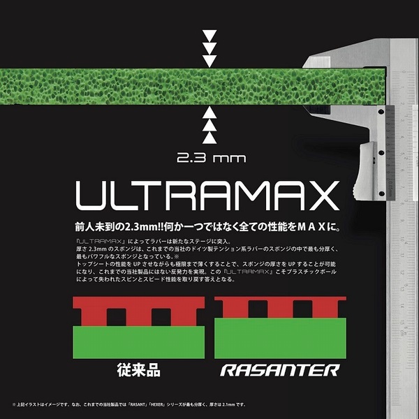 最新鋭のトップシートとグリーンスポンジにより、常識破りのスピン性能・高い弾道・飛距離を兼ね備え、あらゆる面で驚異的な威力を発揮する。 あなたのプレーを1つ上のレベルに導くハイエンドラバー。