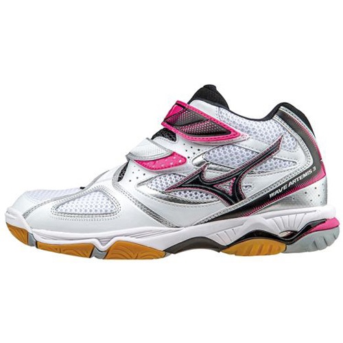 ミズノ(MIZUNO) レディス バレーボールシューズ ウエーブアルテミス3MID 品番:V1GC155809 カラー:09:ホワイト×ブラック×マゼンタ サイズ:22.5〜26.0cm