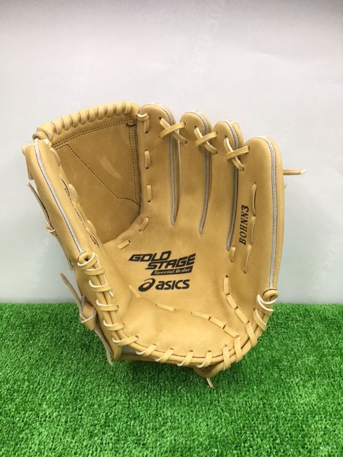 【型付け無料・グラブ刺繍2ヶ所無料(単色)・グラブ袋刺繍無料(単色)】アシックス(asics)〈ゴールドステージ〉硬式用SpecialOrderグラブ 【菊地雄星モデル】投手用グラブ袋付き 品番:BOHNN3 カラー 本体:Gブラウン(14) レースカラー:Gブラウン(14) 縫い糸:ブラウン(33) サイズ:LH(右投用) 素材 表:天然皮革(GSグランドレザー) 平裏:天然皮革(GSグランドレザー) ウェブ:ZB(FTK) 指カバーあり 付属品: 専用袋(ブラック×ゴールド) 生産国:日本