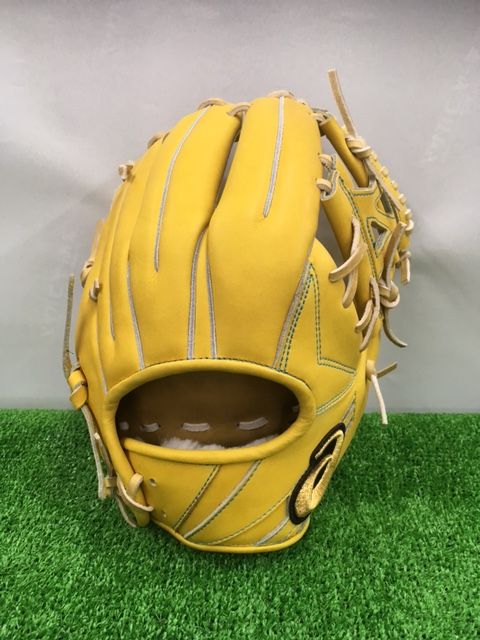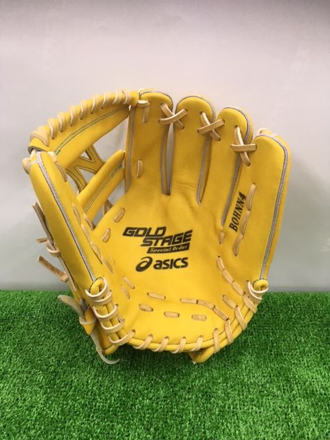 【型付け無料・グラブ刺繍2ヶ所無料(単色)・グラブ袋刺繍無料(単色)】アシックス(asics)〈ゴールドステージ〉硬式用SpecialOrderグラブ AHN11-03 内野手用 グラブ袋付き 品番:BOHNN4 カラー 本体:Bゴールド(15) レースカラー:Gブラウン(14) 縫い糸:スカイブルー(41) サイズ:LH(右投用) 素材 表:天然皮革(GSグランドレザー) 平裏:天然皮革(GSグランドレザー) 基本モデル:AHN11-03 ウェブ:Iスラッシュ 付属品: 専用袋(ブラック×ゴールド) 生産国:日本