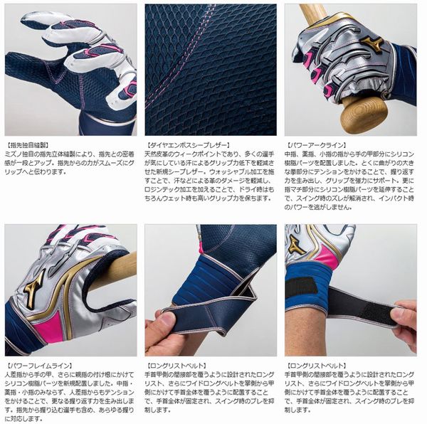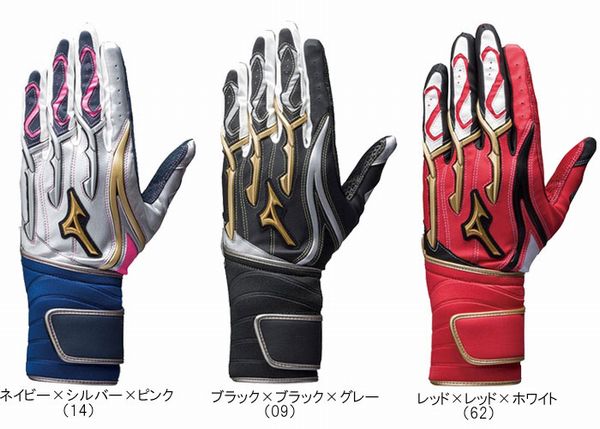 ミズノ(MIZUNO) ミズノプロ バッティング手袋(両手用) シリコンパワーアークMI LONG 品番:1EJEA130 カラー ブラック×ブラック×グレー(09) ネイビー×シルバー×ピンク(14) レッド×レッド×ホワイト(62)