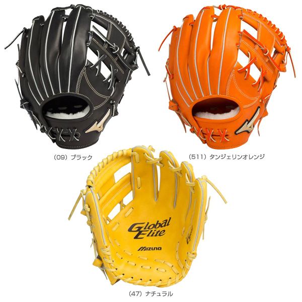 【型付け無料・グラブ刺繍2ヶ所無料(単色)・グラブ袋刺繍無料(単色)】ミズノ(MIZUNO) 硬式野球グラブ グローバルエリート 内野手用 品番:1AJGH14423 カラー:(09)ブラック、(47)ナチュラル、(511)タンジェリンオレンジ ポジション:内野手用H3(ポケット正面タイプ) サイズ9 素 材 受球面/背面/平裏 ファビリティマックレザー(天然皮革:牛革) 付属品:専用グラブ袋 サイズ:9 左右:右投げ用 原産国:フィリピン