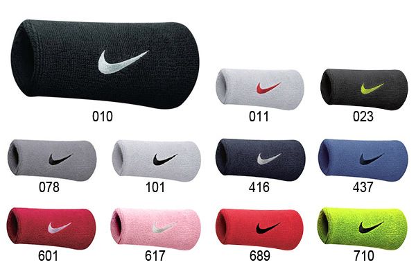 ナイキ(NIKE) スウッシュ ダブル ワイド リストバンド 2個入り 両手 品番:NNN05、BN5002 カラー 010:ブラック/ホワイト BN5002-011:ホワイト/バーシティレッド BN5002-023:ブラック/ボルト 078:シルバー/ブラック 101:ホワイト/ブラック 416:オブシージアン/ホワイト BN5002-437:コメットブルー/バイナリーブルー 601:バーシティーレッド/ホワイト 617:パーフェクトピンク/ホワイト BN5002-689:ソーラーレッド/ポートワイン 710:アトミックグリーン/ブラック