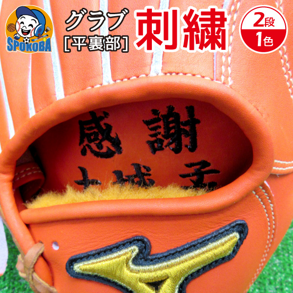 グラブ刺繍 平裏部 刺繍 2段1色 【刺繍加工】 グローブ刺繍 エンブロイダリー ししゅう オリジナル オーダーメイド 選べる フォント カラー マルチカラー 持込 同時購入 加工代金  (spokoba-shisyu02)